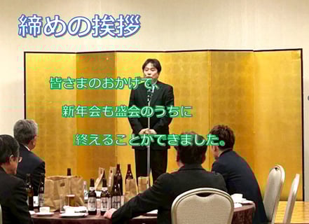 最後に常務より締めの言葉をいただき、3本締めで今年の新年会を華やかに締めくくりました。
